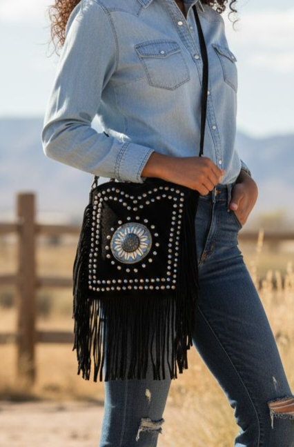 • Afgezet met gave applicatie, schelpjes, studs, suède frings & turquoise steentjes