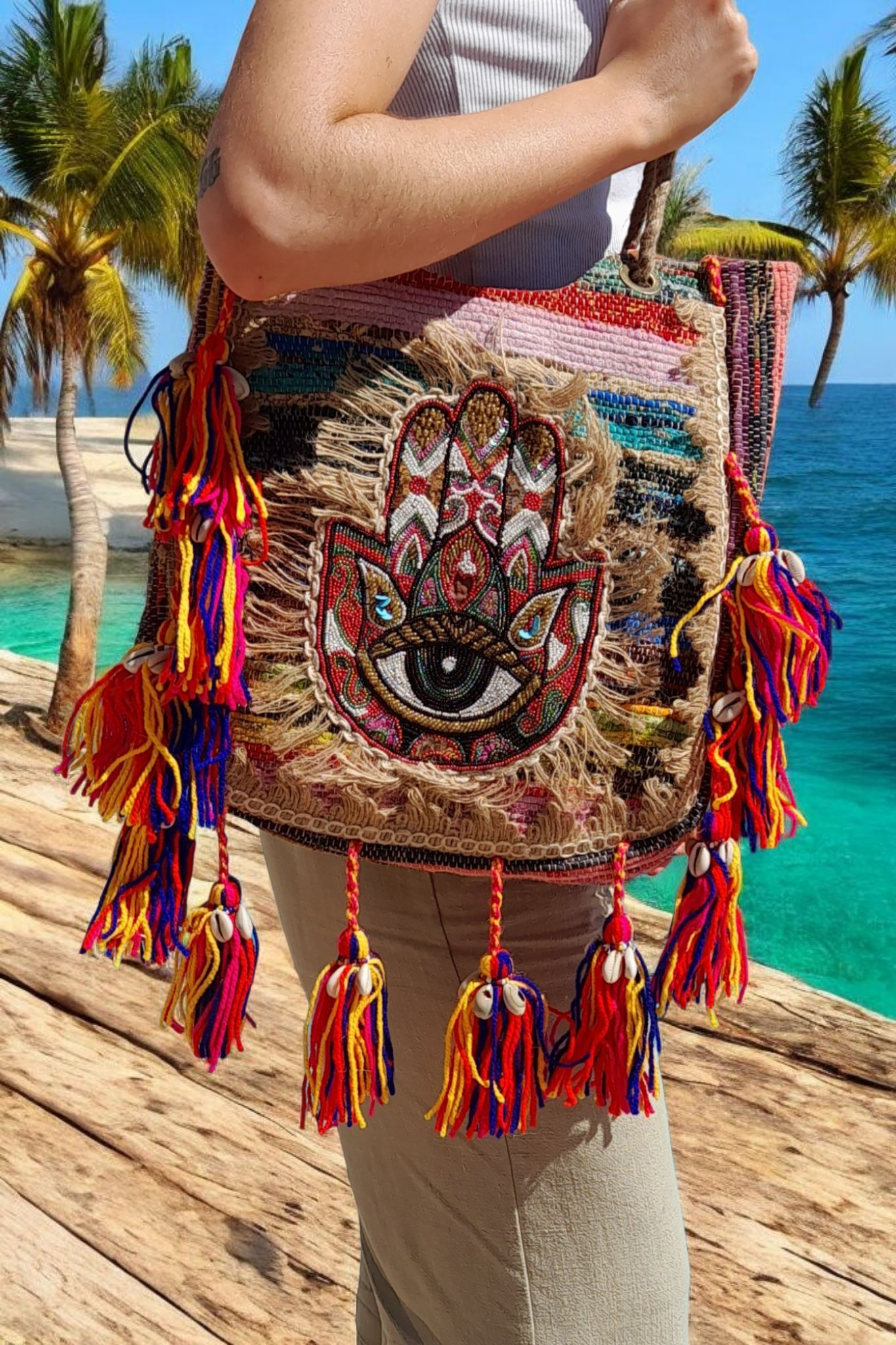 • Boho Bag Es Cubells small is handgemaakt, uniek exemplaar, hiermee steel jij de show!!