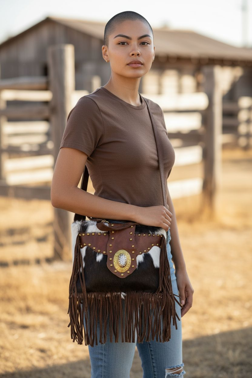 • Bruine suède fringe